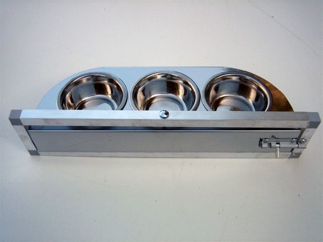 Materialen: RVS draaiplateau, RVS bakje (3x) + aluminium omranding