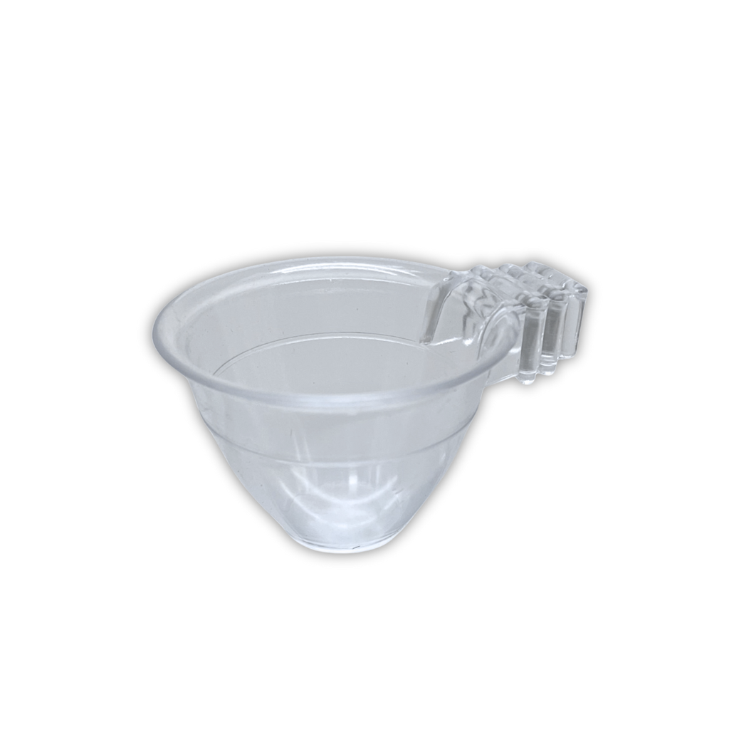 Klein transparant eivoerbakje voor vogels dat perfect past in het voorfront van een broedkooi. Ideaal voor hygiënisch voeren en eenvoudige controle tijdens de kweekperiode.