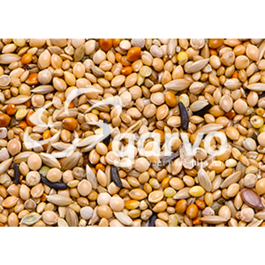 panicum 26%, millet geel 20%, kanarie witzaad 20%, millet wit 20%, millet rood 4%, panicum rood 3%, perillazaad wit 2%, guizotiazaad 2%, millet japans 2%. hennepzaad 1%