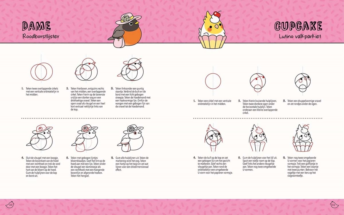 Leer 80 verschillende Kawaii vogels tekenen – stap voor stap