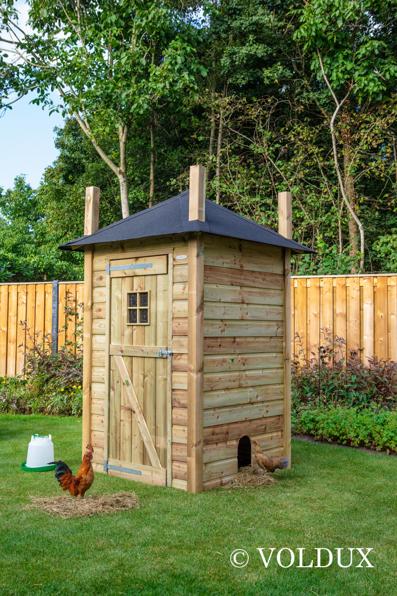 Het Voldux kippenhok heeft de uitstraling van een hooiberg waardoor hij perfect tot zijn recht komt in een ruime kippenren!
