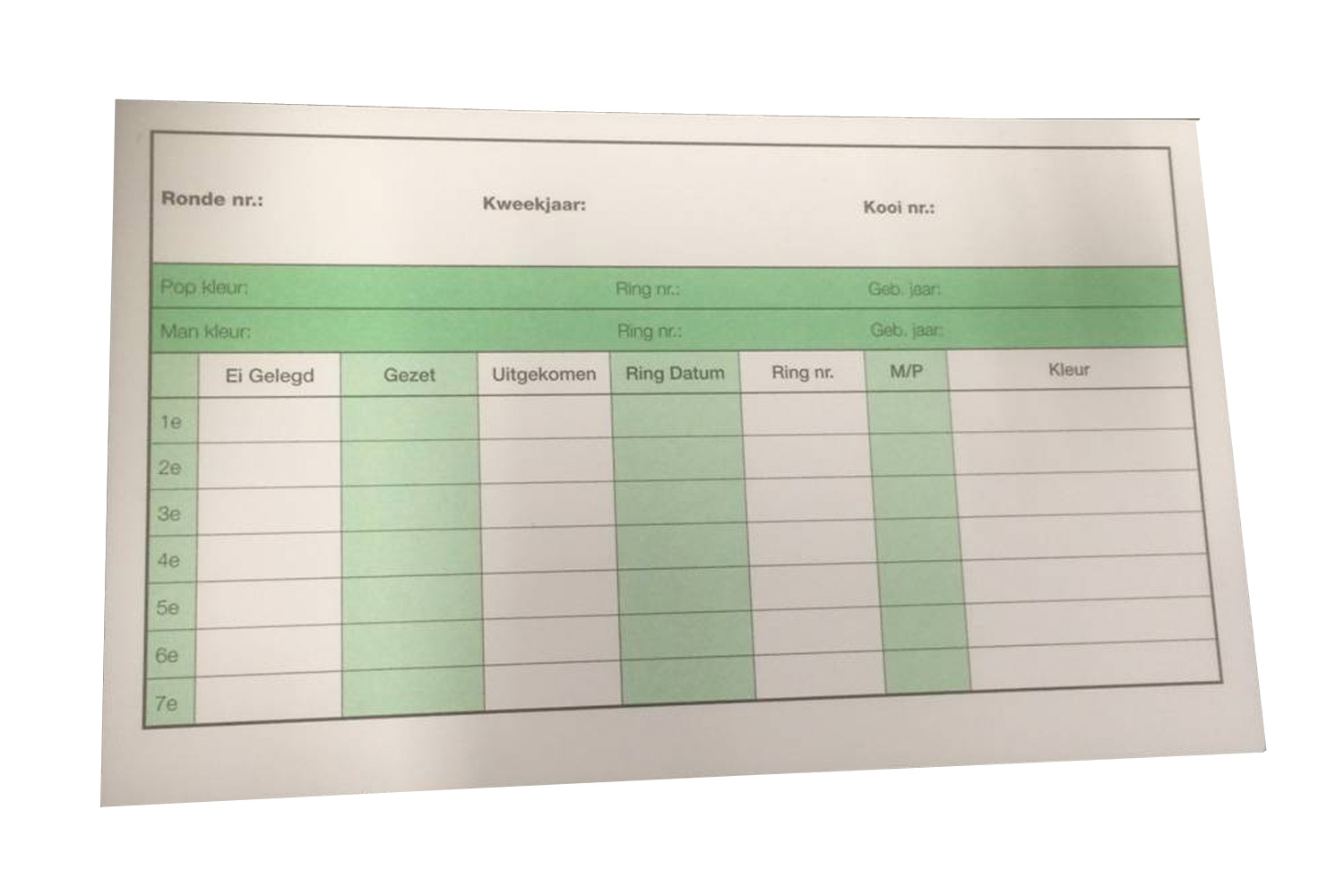 Een kweekkaart is een speciaal ontworpen kaart waarop je belangrijke informatie over je vogels noteert, zoals: