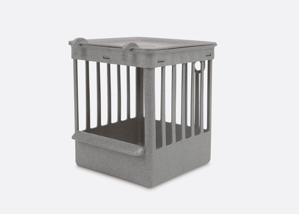 Plastic traliesnestkast, uit één stuk inclusief afstandhouder zodat luis geen kans heeft. Zowel in de volière als aan de kweekkooi te gebruiken. Dit nest is volledig van gerecycled materiaal gemaakt.