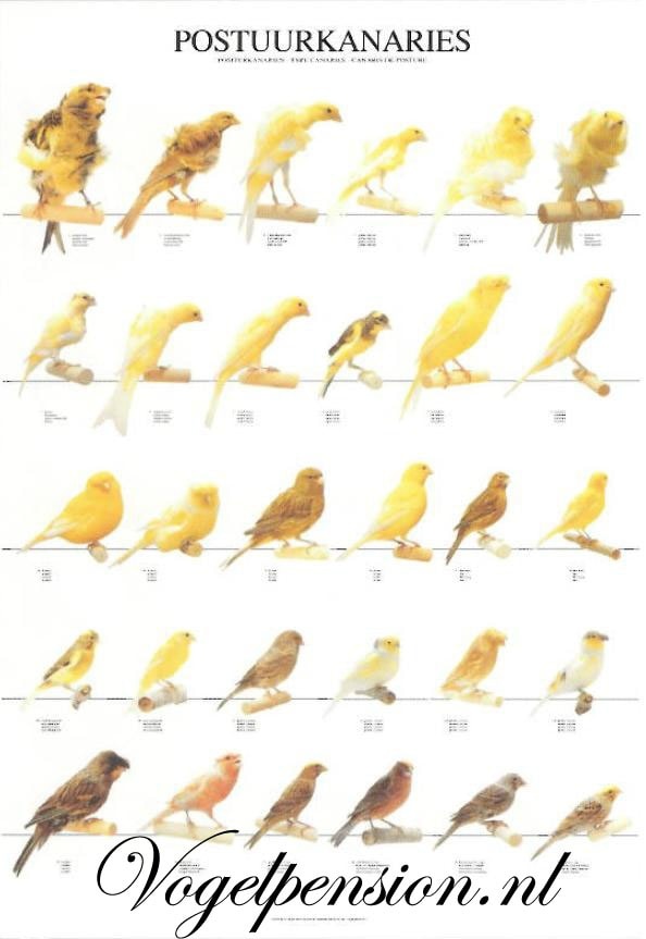 Duidelijke illustraties van verschillende postuurkanaries