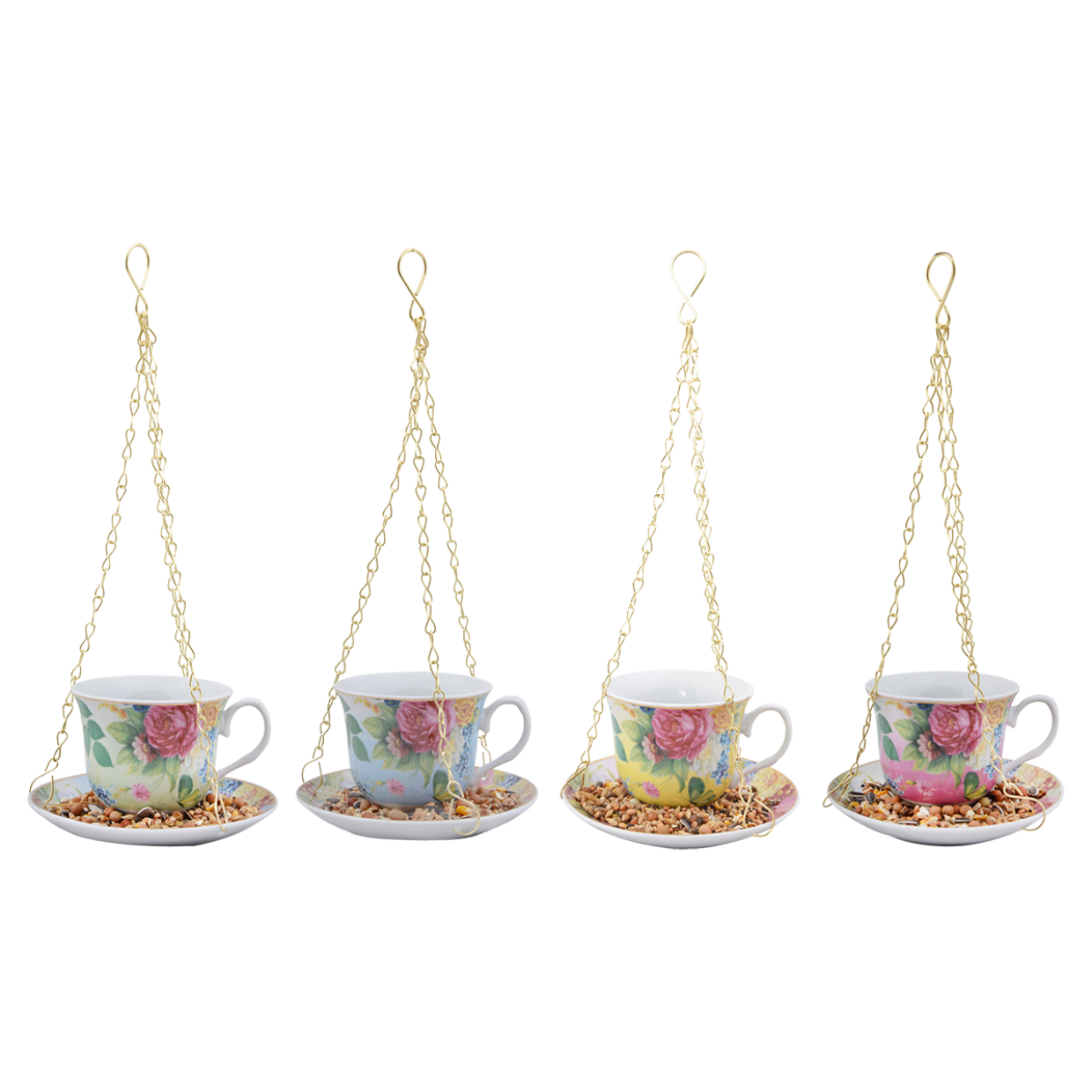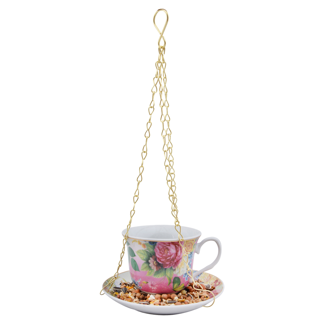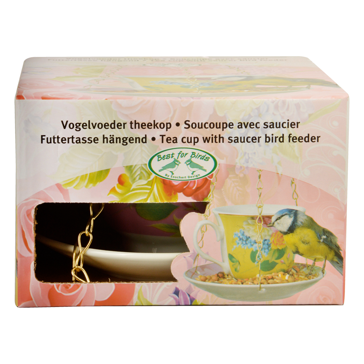 De vogelvoederhouder kop en schotel is niet zomaar een voederplek, maar een echte eyecatcher. Het elegante ontwerp – een kopje met bijpassende schotel – geeft je tuin of balkon een sfeervol accent. Hang de houder eenvoudig aan een boomtak, haak of pergola en geniet van het vrolijke gefladder van meesjes, mussen en roodborstjes die hun buikje vol eten.