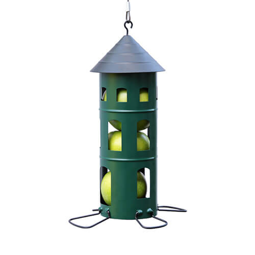 3-in-1 functie: geschikt voor strooivoer, mezenbollen én fruit. Met binnenfles geschikt voor zaden, zonder fles voor mezenbollen of appels.